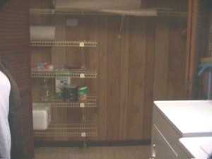 ![]() This is the washroom/pantry area. The closet doors will go, and we will use the shelves there for dry goods. The washer & dryer sit next to a mud sink (not shown), to my right. |